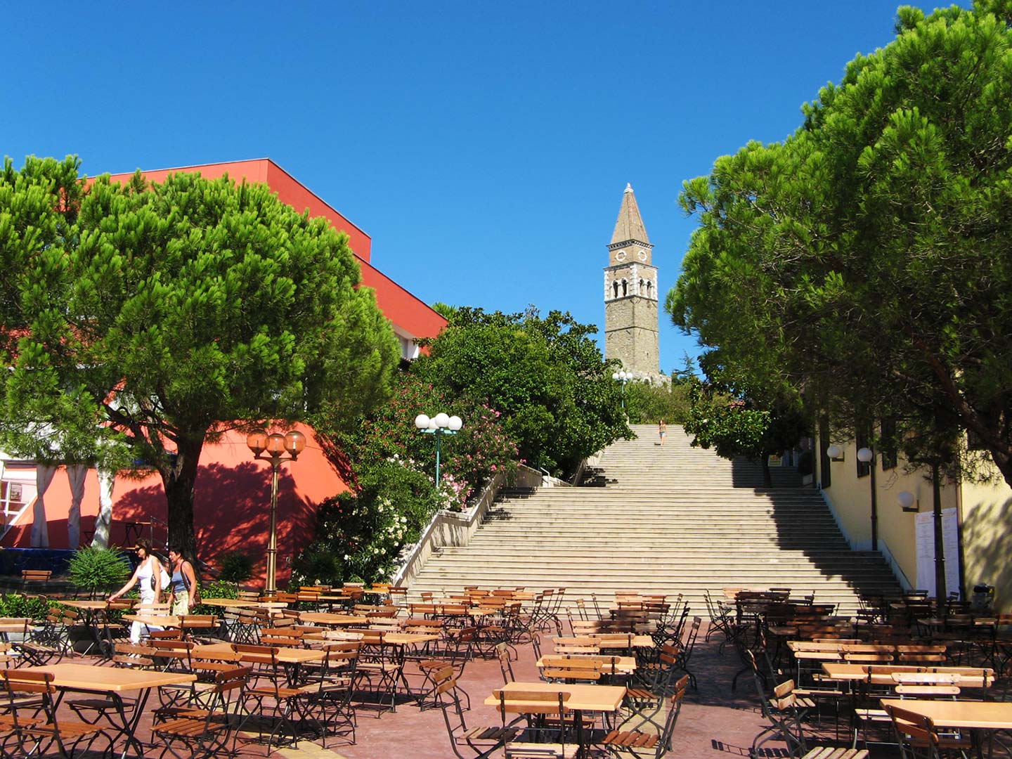 Should this not be enough, you can visit charming neighbouring villages and Mediterranean hinterland, which will colour your day and give your holiday the charming character. The coastal cities of Piran, Izola and Koper are characterized by a charming maze of narrow streets, alleyways and picturesque squares. A special architecture of their ancient town cores demonstrates a rich history ready for you to explore. The proximity of Karst offers variegated excursions – from visits to subterranean caves, stunning frescoes of the fortified church in Hrastovlje, or to stud farm Lipica, famous for its Lipizzaner horses. All this and more offers you unforgettable and happy holidays!